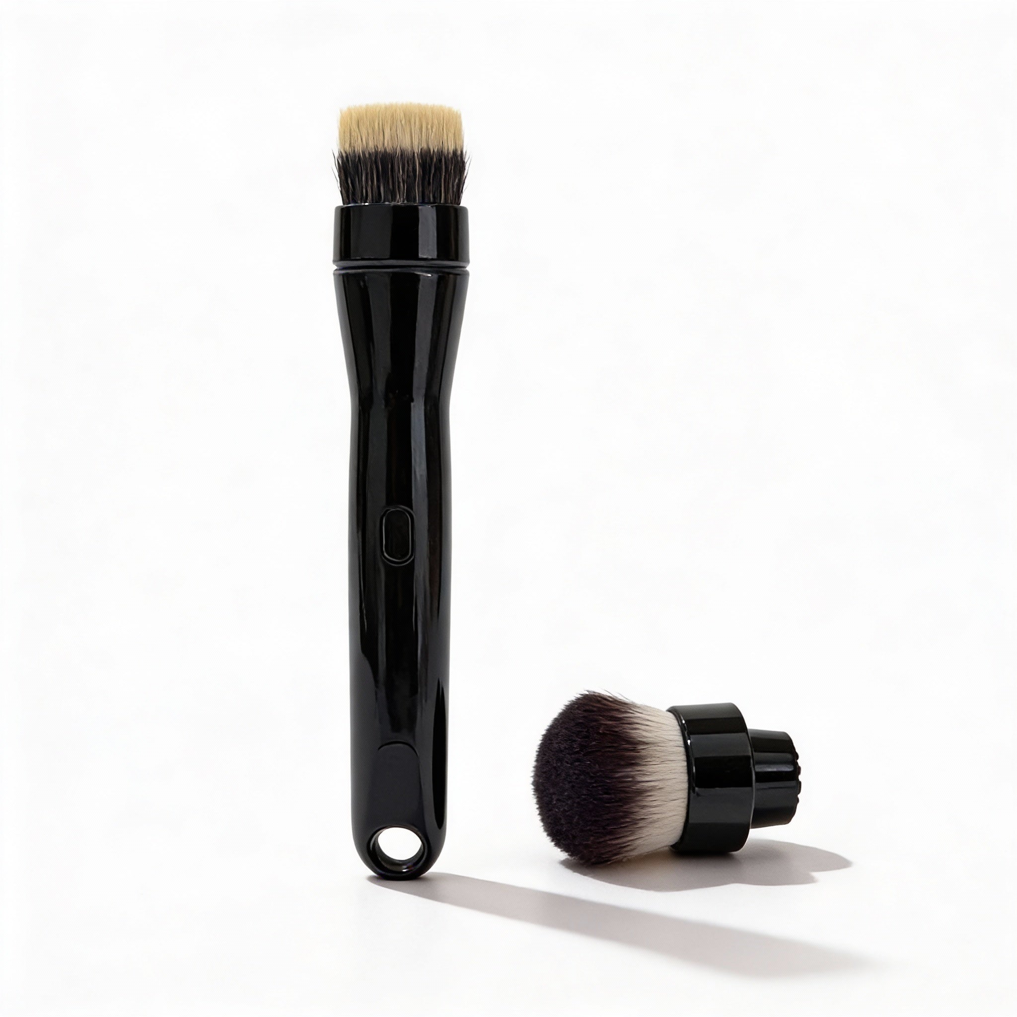 Die elektrische 360°-Rotation verteilt Foundation, Puder oder Contouring besonders gleichmäßig & sanft auf deiner Haut – ohne Streifen oder Übergänge.