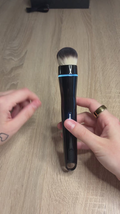 • Die rotierende Bürste verblendet dein Make-up in Sekunden